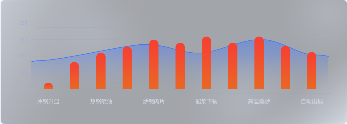 可以完全掌控炒制过程中菜品的变化,并精准控制炒制节奏,保证出品远超行业标准,在磐石机芯的加持下,炒制过程中的温差不超1%,高猛活力稳定持久。